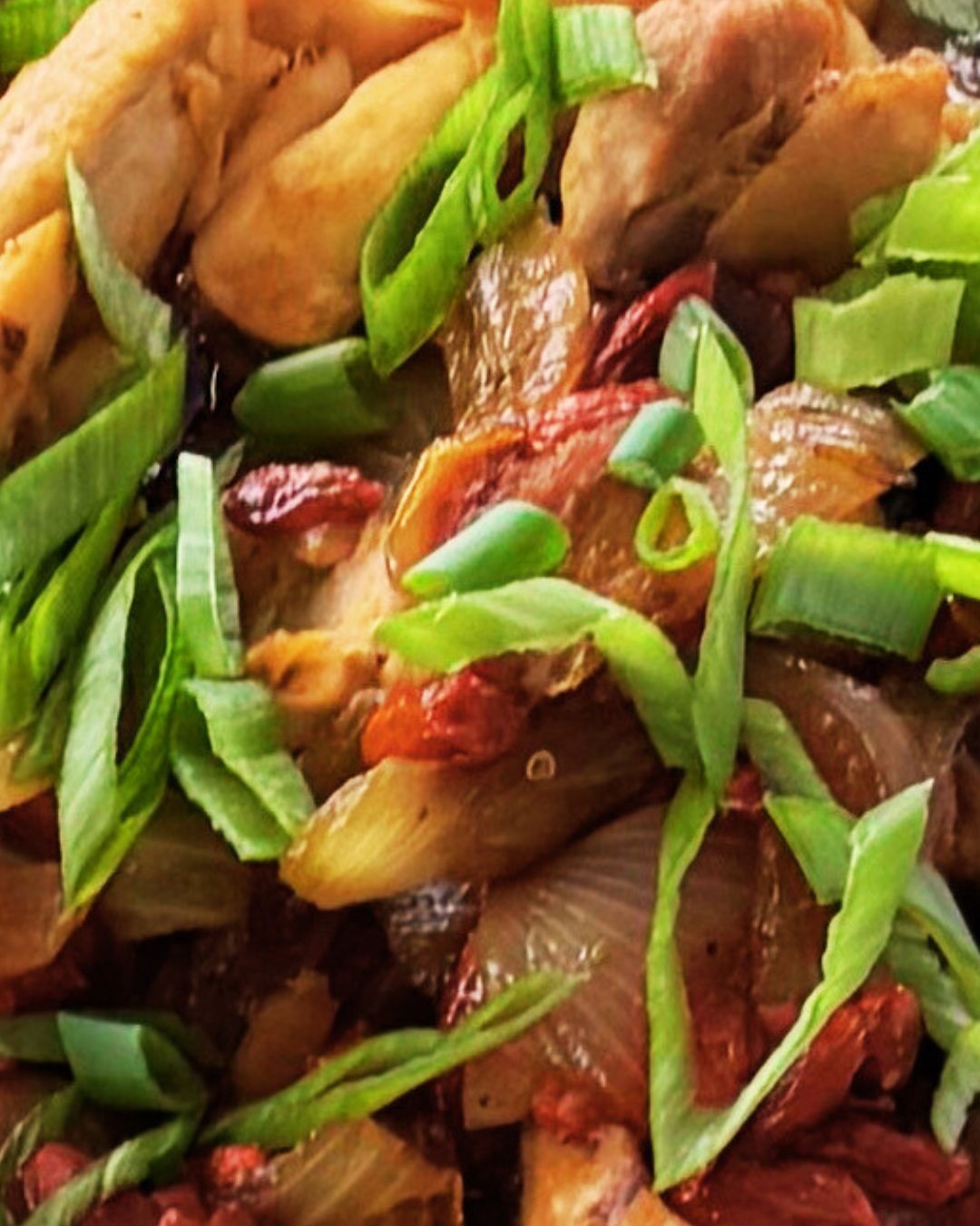 Gogi Berry & Chicken Thigh Stir Fry with cauliflower rice & broccoli