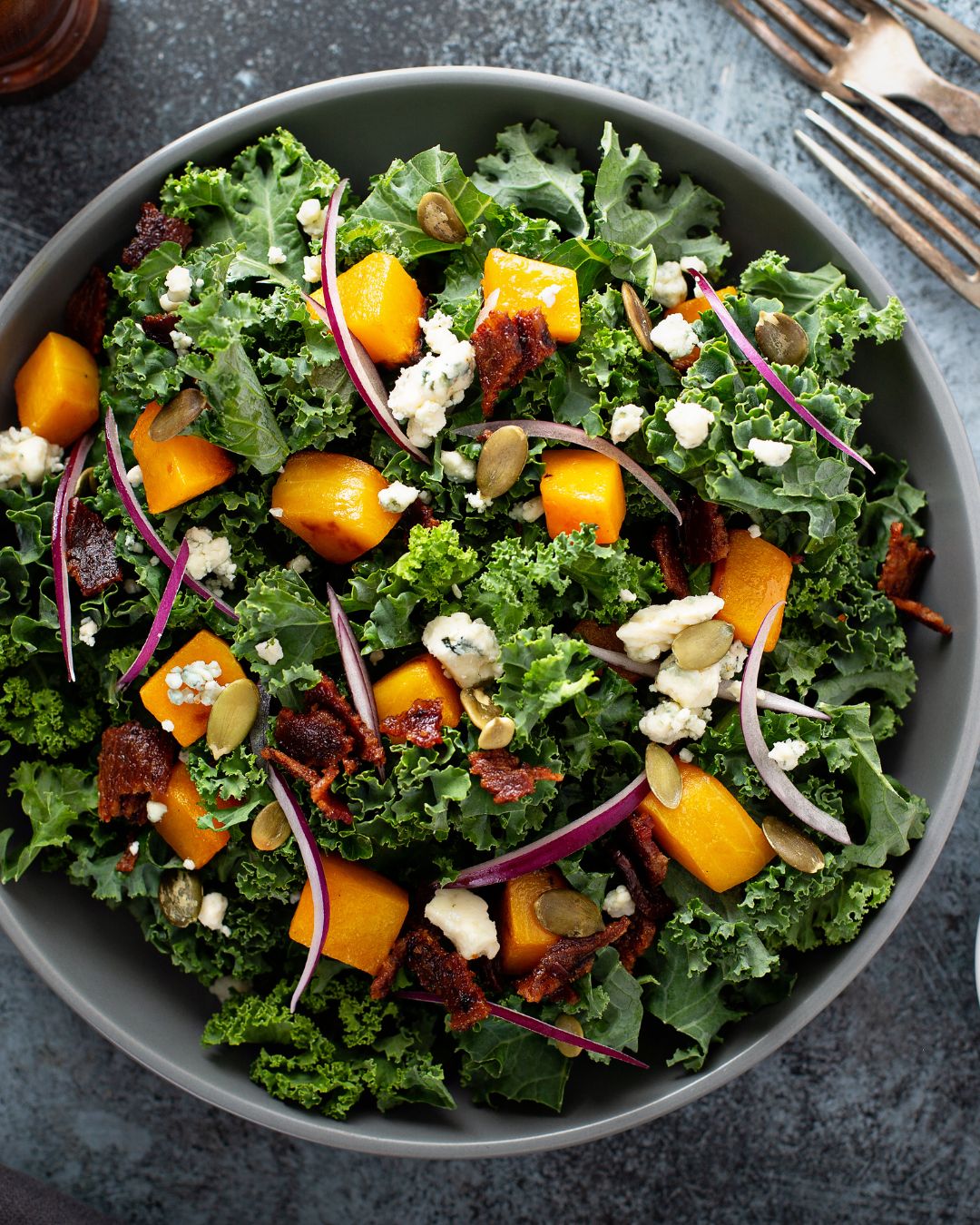 Autumn Harvest Salad with roasted chicken, delicata squash, dried cranberries & maple vinaigrette